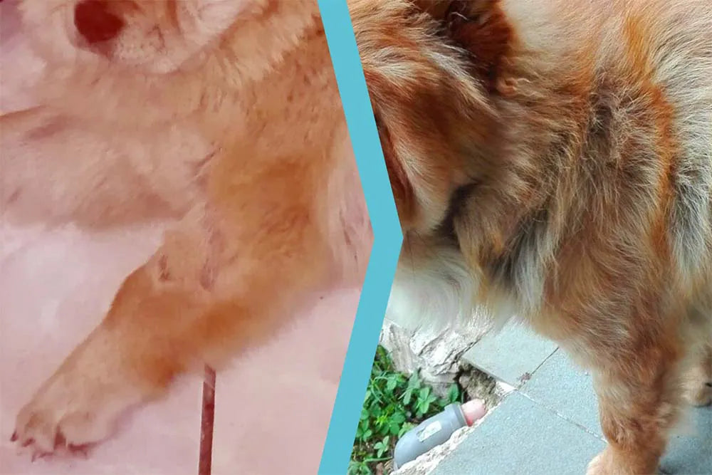 Oral administration of Aloeplus Syrup was given to the dog for 30 days, 1 ml per 3 kg of weight. After just under a month of treatment, the dog no longer had any issues and the coat became thick and shiny again.