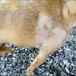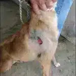 Chien croisé avec déchirure cutanée et saignement